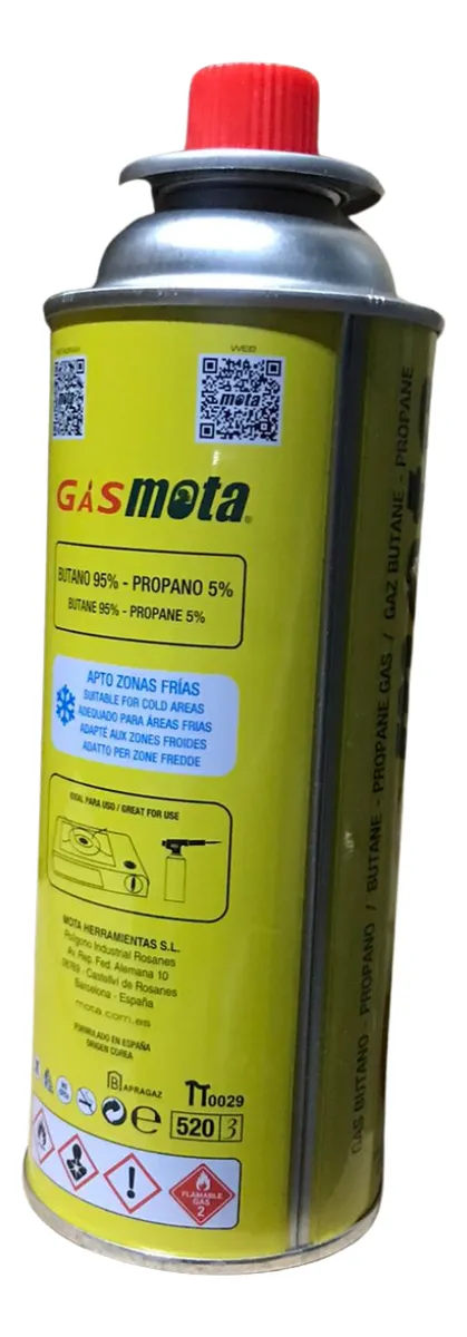 El Gas Butano Líquido Mota 227g es ideal para cocinas portátiles, camping, pesca y uso doméstico. Su presentación en cartucho tipo aerosol permite una instalación rápida y segura, proporcionando una combustión eficiente, estable y de alto rendimiento.