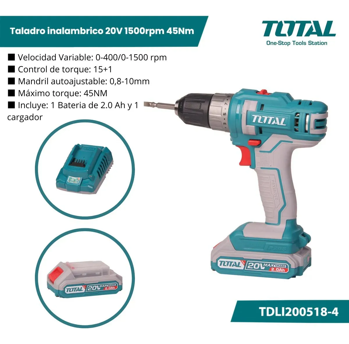 El taladro atornillador inalámbrico Total TDLI200518-4 es una herramienta práctica y funcional, ideal para tareas de perforación y atornillado en trabajos domésticos y de mantenimiento. Su funcionamiento a batería de 20V brinda comodidad y libertad de movimiento, permitiendo trabajar sin cables en distintos entornos.
